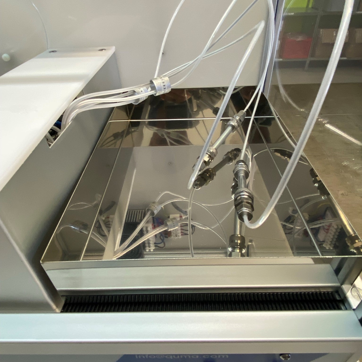 Our Qumat and our Permobil working stations are testing with inert gas. This means that the collection medium is a gas. There you have to option to use air or nitrogen. The inert gas testers are measuring in a open loop system.