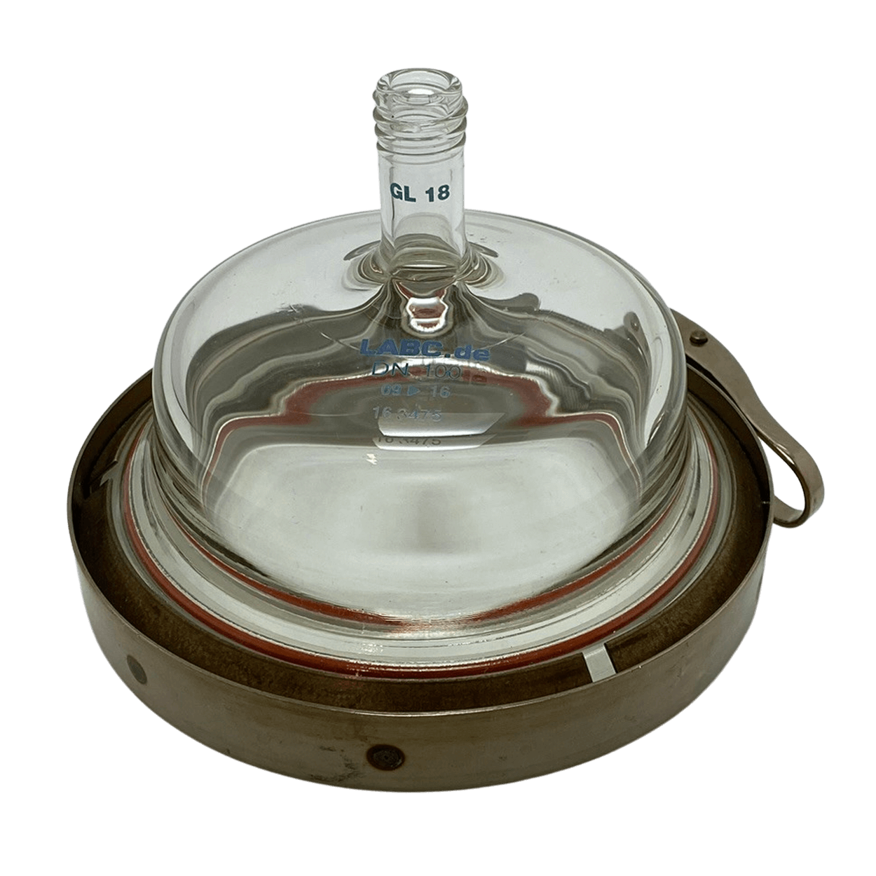 Der Glasdeckel wird aus DURAN®-Glas gefertigt. Es stehen drei Varianten mit GL-Gewinde zur Verfügung. Das Gewinde kann zentrisch (z) oder seitlich (s) angebracht sein. Beim zentrischen Glasdeckel hat man darüber hinaus die Wahl zwischen einem GL18 und einem GL32 Gewinde. Grundsätzlich ist festzuhalten, dass man mit zentrischem Gewinde das Migrationsimulanz einfacher einfüllen kann. Seitlich angebrachte Gewinde lassen die Migrationszelle kompakter werden. Man spart Höhe und damit Platz im Trockenschrank.