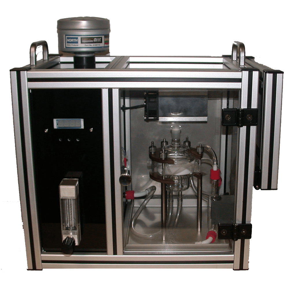 - LABC-Permeationszelle entwickelt und gebaut unter Einhaltung der Normen DIN EN ISO 374, DIN EN ISO 16523, DIN EN ISO 6529 und F-739