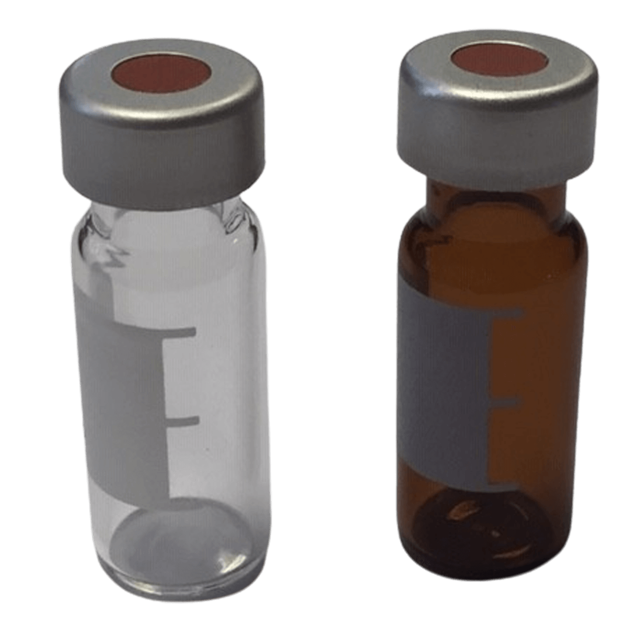 Das PreCrimped-Vial-Set besteht aus 100 Flaschen ND11 mit Rollrand 32x12mm und der passenden ND11 Bördelkappe mit Naturkautschuk rot-orange/Butyl rot/TEF transparent Septum. Die Bördelkappe ist blau bei Klarglasflaschen und rot bei Braunglasflaschen. Die Flaschen werden im Labor unter kontrollierten Bedingungen mit dem Edelgas Argon gespült und unter einer Schutzgasatmosphäre verschlossen.